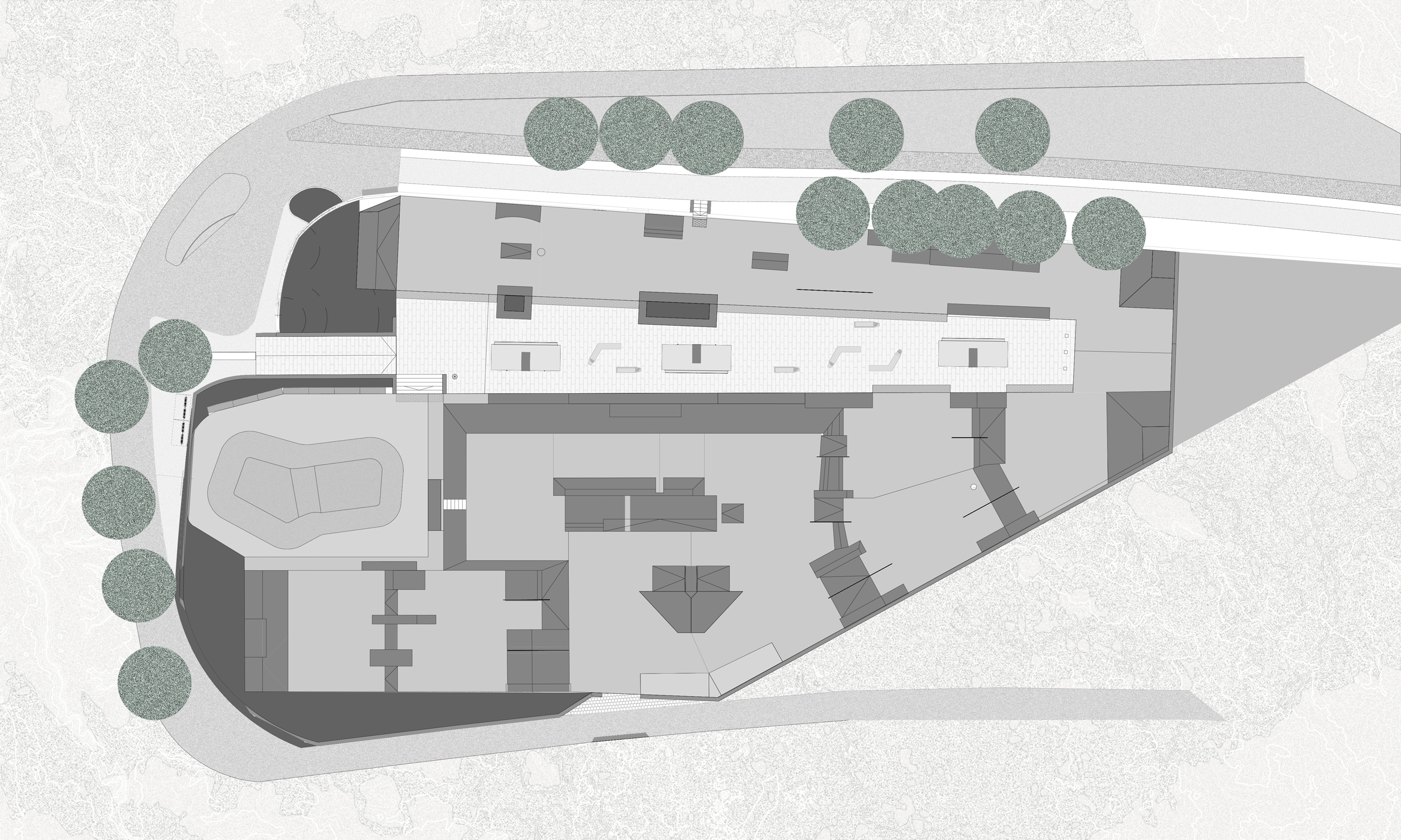 A Skate-Urbanism project that integrates skateboarding into a continuous granite urban surface, combining street-like elements and a central concrete bowl for both sport and public use.